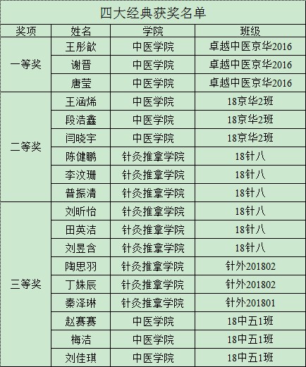 书生意气,挥斥方遒。半决赛后,各有6支队伍脱颖而出,得以参加决赛,角逐最终的冠军席位。“中医学基本理论与知识竞赛”,由中基教研室许筱颖教授、中诊教研室王天芳教授、中药教研室钟赣生教授、方剂教研室高琳教授担任评委;“中医四大经典知识竞赛”由内经教研室禄颖副教授、伤寒教研室刘敏教授、金匮教研室贾春华教授、温病教研室于河教授担任评委。在经过“牛刀小试”、“团结就是力量”、“中医猜词秀”、“眼疾手快”、“险中求胜”五个环节的精彩较量后,来自william威廉中文官网的16级卓越中医京华班同时获得“中医学基本理论与知识竞赛”和“中医四大经典知识竞赛”的冠军。